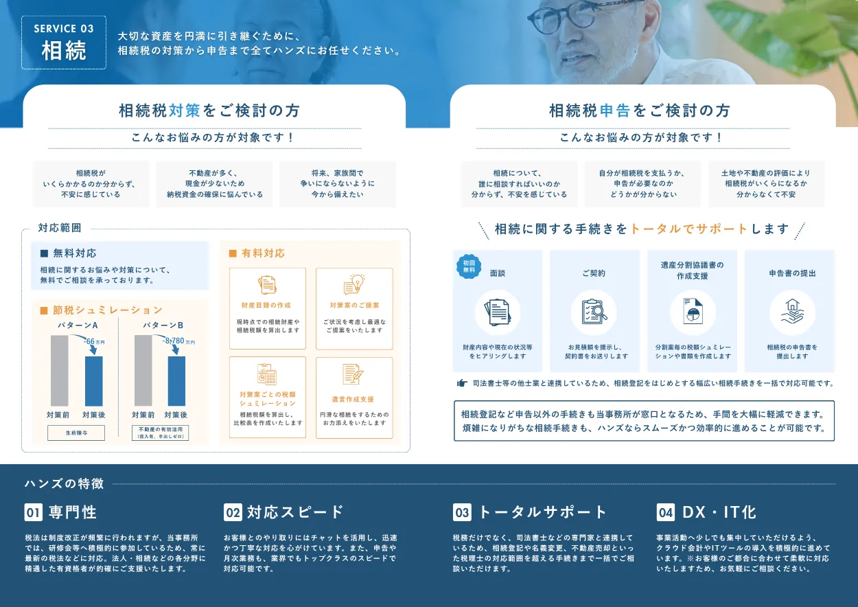 事業内容:税務顧問サービス、決算・申告代行、相続・経営支援事業