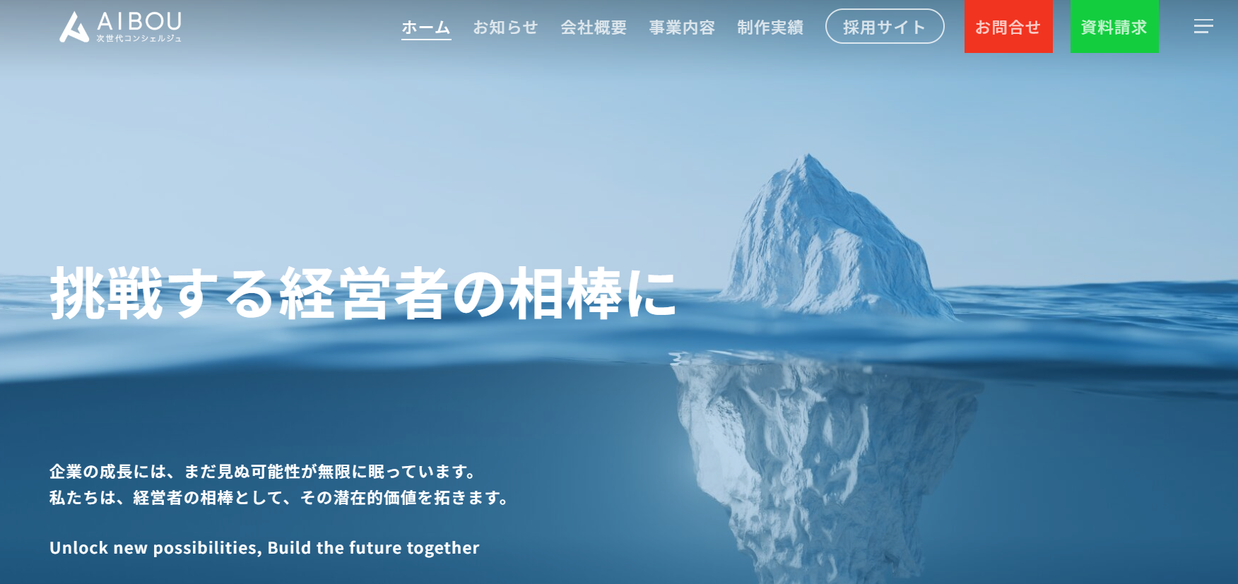 当社は、「挑戦する経営者のAIBOUに」を理念として掲げ、企業が抱える課題に伴走する経営パートナーです。マーケティングやファイナンス、人材(HR)支援を行う経営コンサルティングファームです。スタートアップから上場企業まで、幅広い企業様のパートナー(相棒)として、認知拡大・事業成長・組織づくりを総合的にサポートしています。